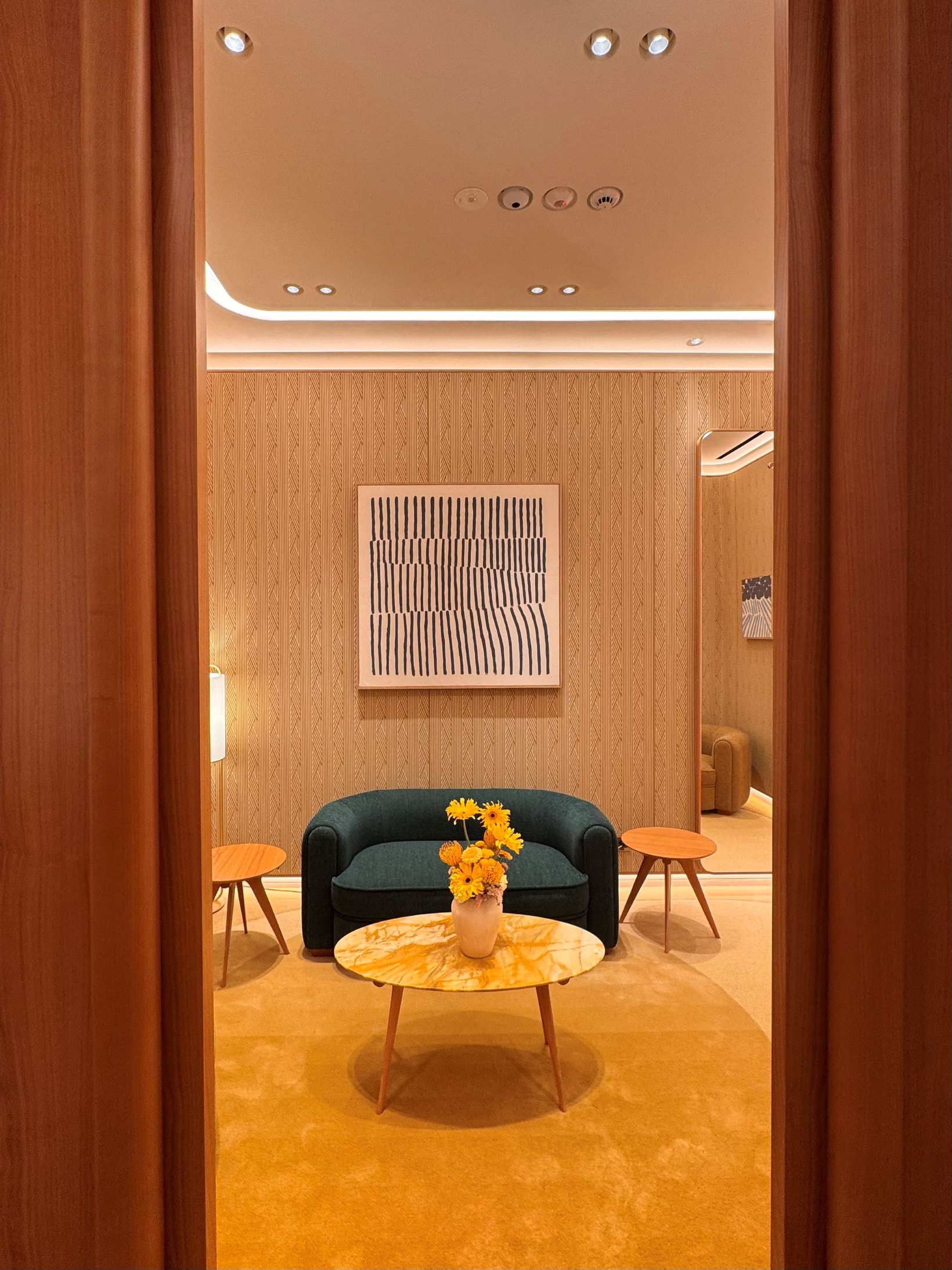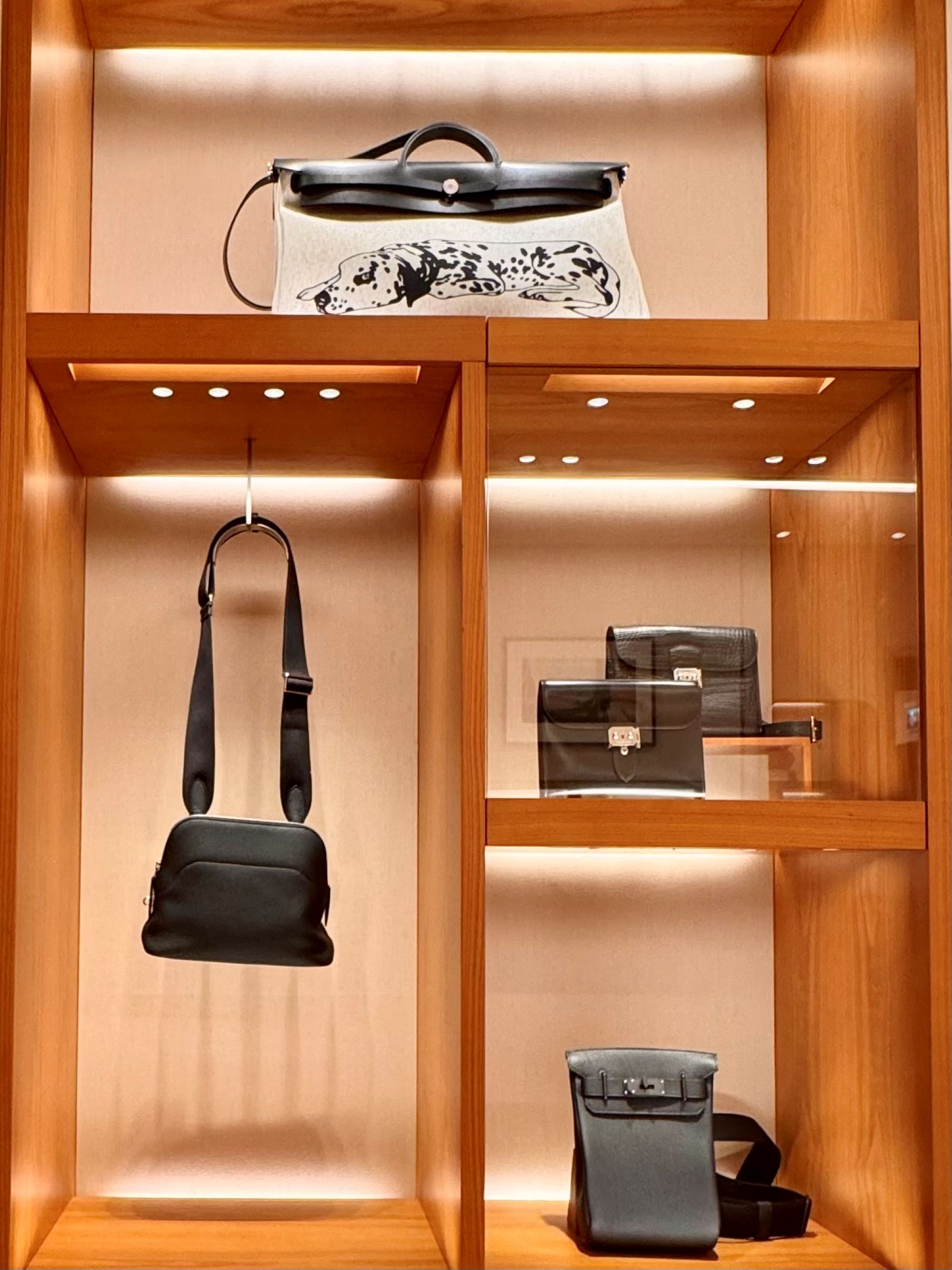 Cette réouverture, après plus de six mois de travaux, permet à la marque de mieux valoriser les seize métiers qui composent l’univers de la maison, de la sellerie, au prêt-à-porter homme et femme, de la chaussure à la parfumerie. Mais c’est l’univers de la maroquinerie (premier métier de la maison, à fin septembre 2025, il totalisait 5,2 milliards d'euros de chiffre d’affaires dans le monde, en hausse de 12,6% à taux constants) qui gagne en importance, puisque désormais 50m2 y sont consacrés. L’espace, gagné sur la boutique Moncler qui jouxtait le magasin Hermès et désormais déplacé à une autre adresse, offre également un espace-boudoir privatif. Le magasin totalise 300 m2, sur deux niveaux, et s’agrandit donc de 100m2 (50m2 par niveau).